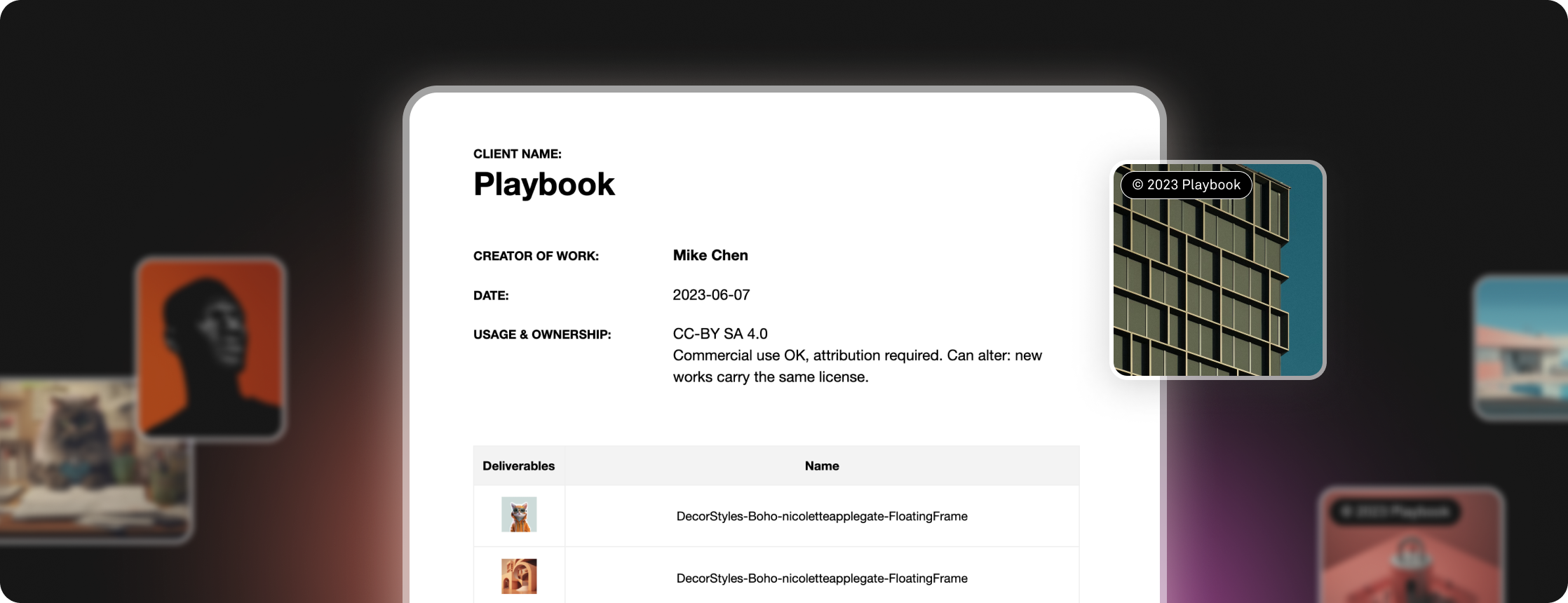 We’ve developed a native licensing feature, so when you share work externally, you can mark it as copyrighted by you. This alone doesn’t stop others from abusing your copyright outside of Playbook, but it’s a first step, and in the future we can extend this system to automatically detect copyright violations and protect our community. Here’s how to copyright your work or create licensing terms on the fly.
