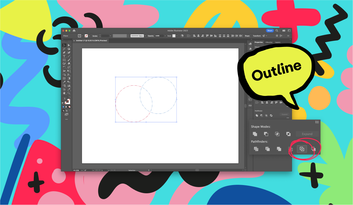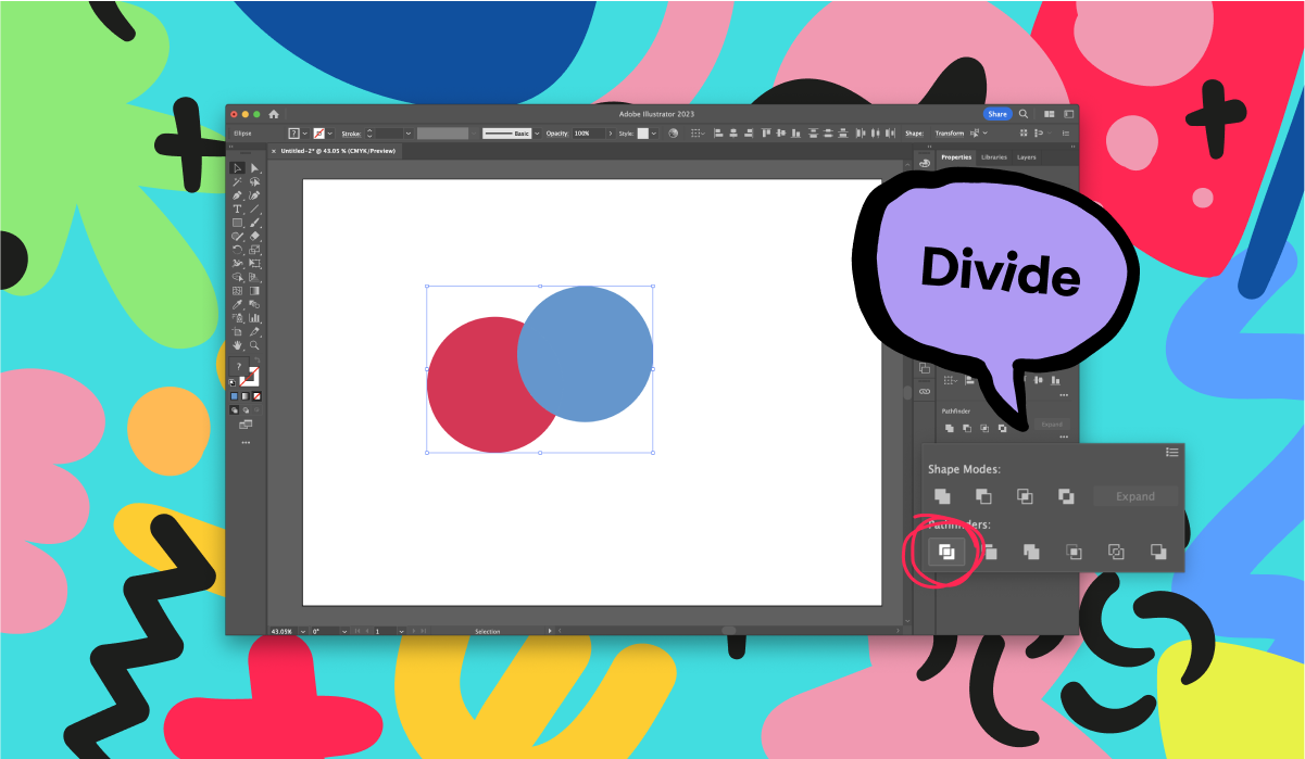 Alternatively, you can go to the overhead menu Window > Pathfinder. Under the Pathfinder panel, you’ll find different options for modifying your objects.