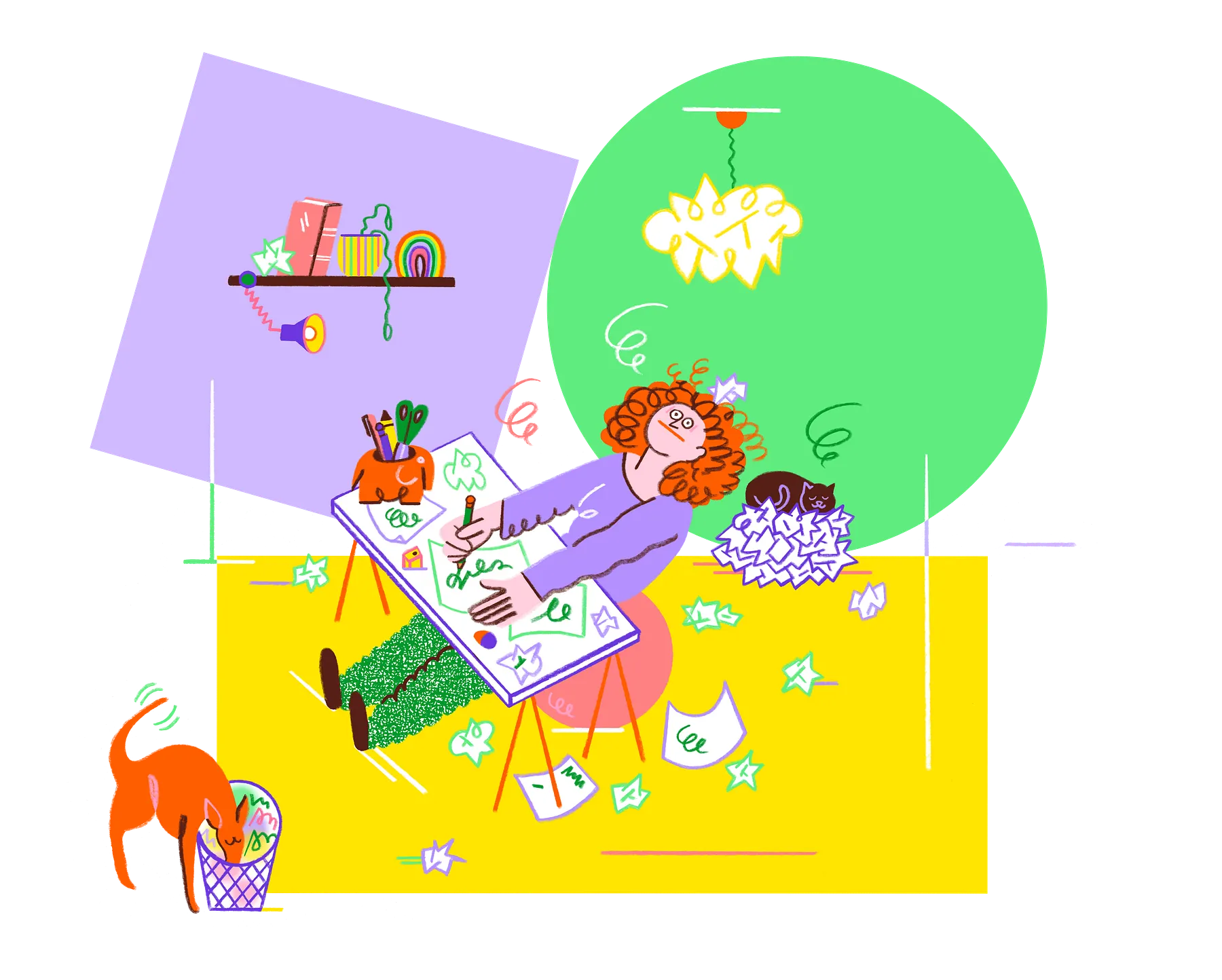 Kati Szilagyi is a freelance illustrator in Berlin. She loves to work on both strong conceptual ideas as well as atmospheric scenes, often with her own humorous approach. Her technique is an interaction between analogue and digital elements. She uses classical drawing as well as cutouts and adds the final touches and colours digitally.