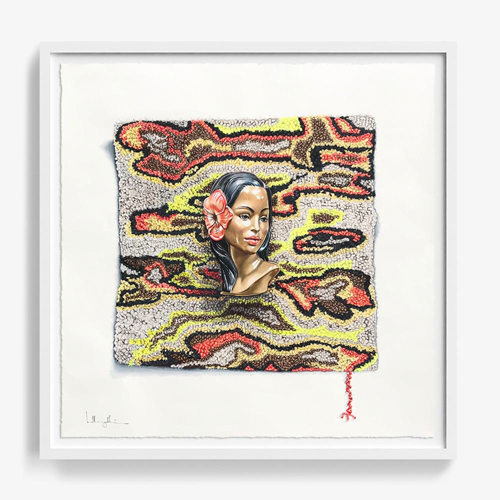 Photographing the subjects is maybe the most important part of the process, seeing as my style is photo realistic, the photo has to be perfect, working a lot with the highlights and shadows of the piece, to give it dimension. This is why I love old, used and somewhat trashed objects, they’re dynamic and more interesting when the light hits them the right way. I lean towards things that are tied to a certain location or time; memorabilia of sorts. Whenever traveling, I’m trying to spot yard sales or a doozy antique shop, where I can find things I’d never think to look for. Like a porcelain bust of a Hawaiian girl, from a yard sale in the middle of Idaho, that I then used for Naked Women Love Carpet. The carpet was from a pawn shop in Nevada.