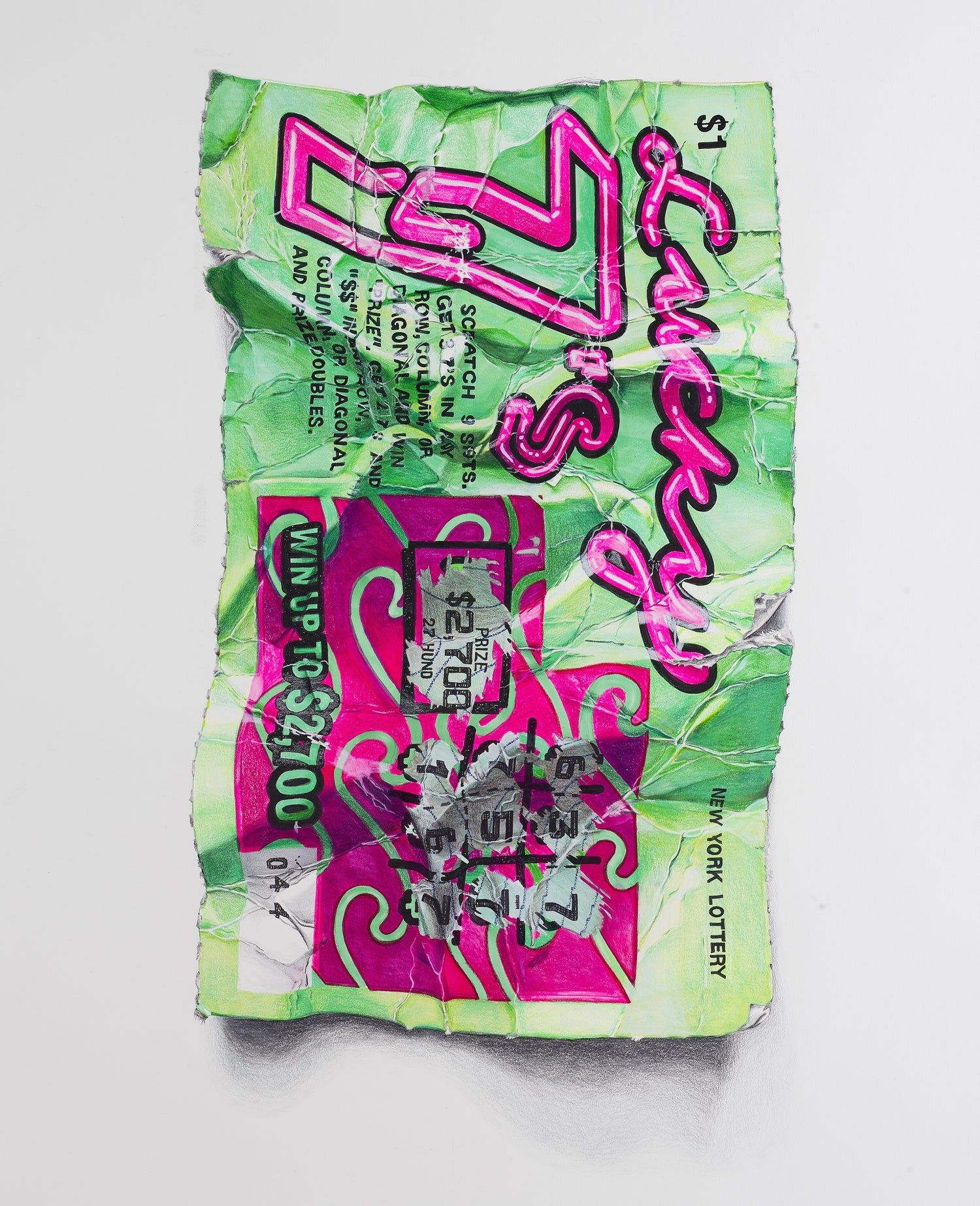 I didn't study art and I don't always know what I’m doing, I'm just kind of winging it and I’m still such an outsider. So I wasn’t really part of it at all in Melbourne, but New York has been a big influence on me, I am so inspired by it. The first series I did was largely inspired by New York, I drew these three lottery tickets that I found on the street.