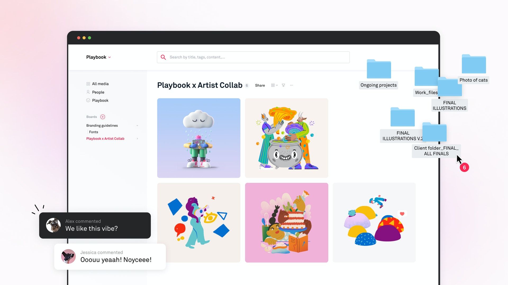 Solving the pain of organizing and collaborating with design files is just the beginning In this unique moment as new perspectives and imagination are more valuable than ever, Playbook is becoming the home for illustrations, videos, memes and more, and will help creatives to license, publish, transact and otherwise realize the value of their work.