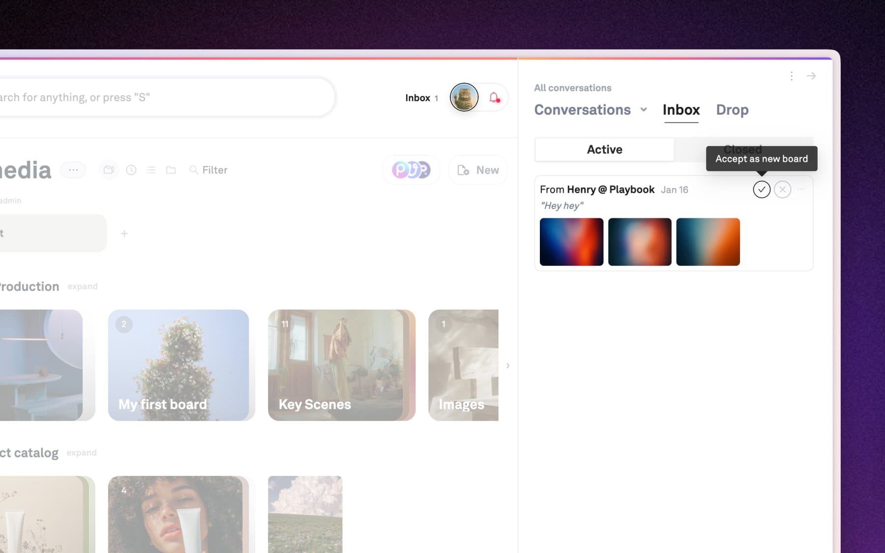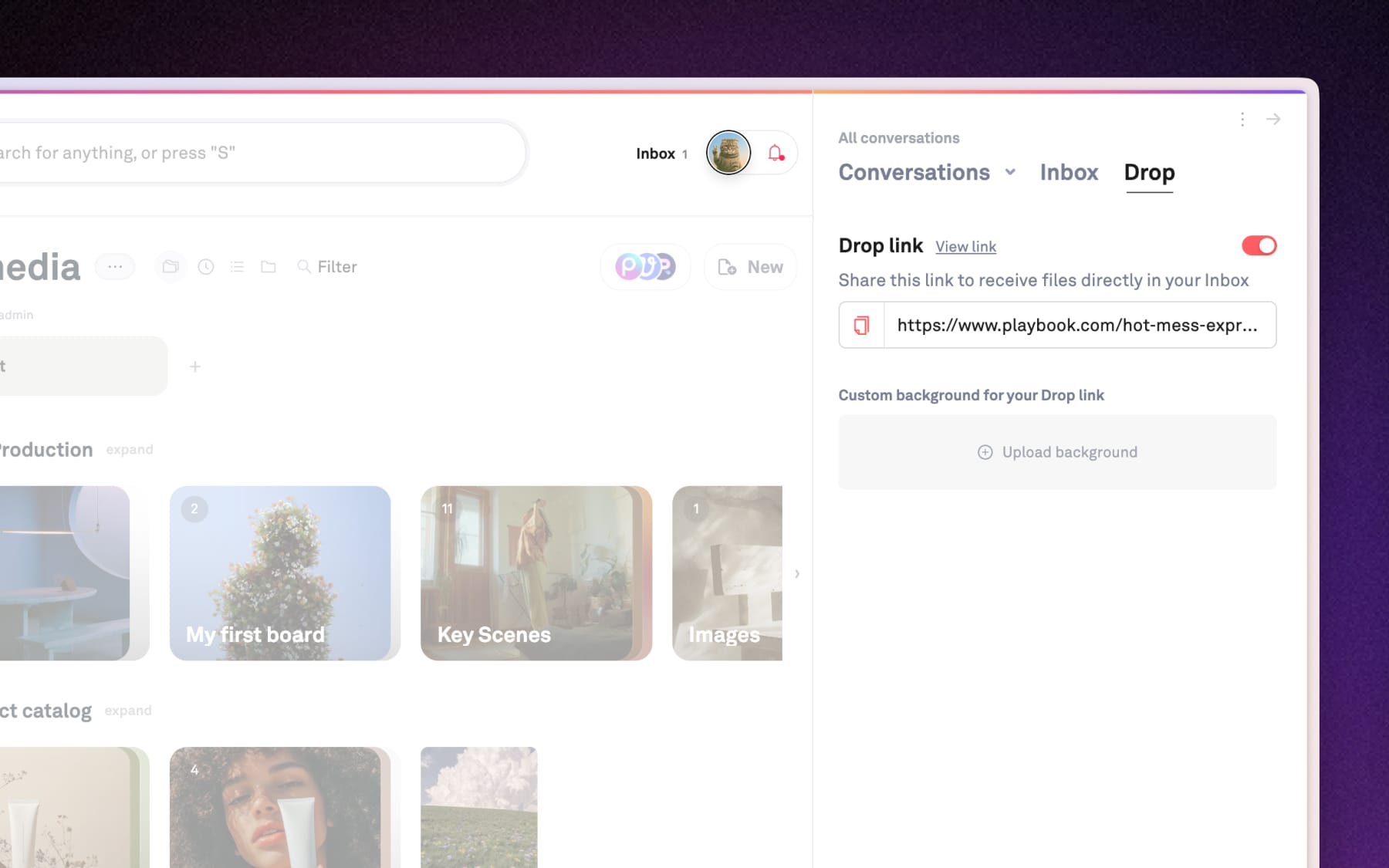 Your Drop link is your personal "inbox" for assets. You can manage it directly from your workspace sidebar in All media.