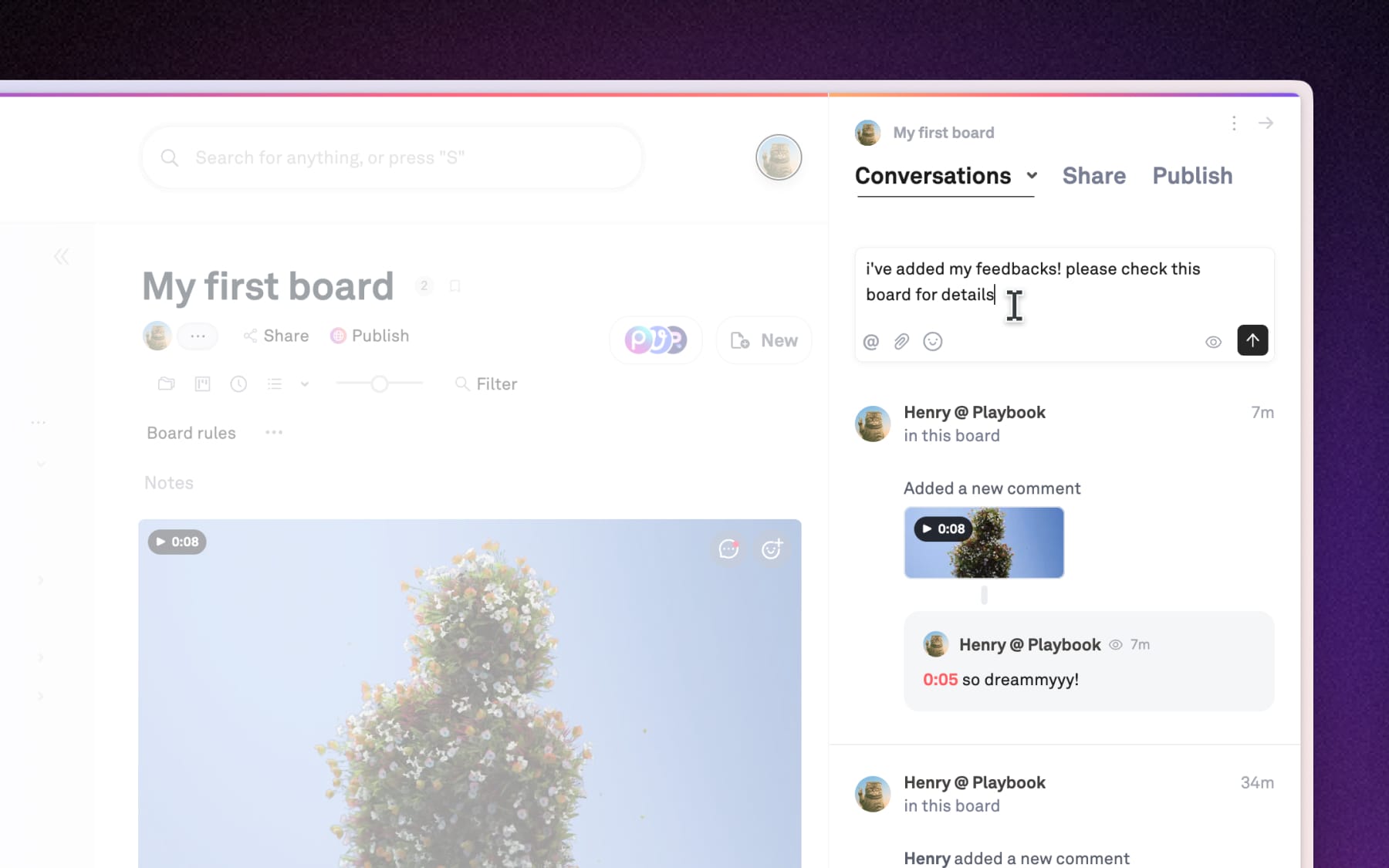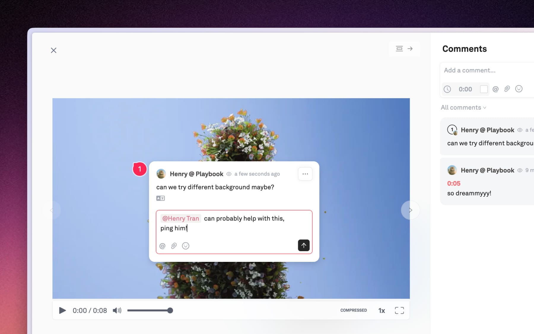 In Playbook, feedback happens exactly where the work is. By using Comments and Reactions, you can provide clear, actionable feedback directly in your assets, ensuring your team and clients are always on the same page.