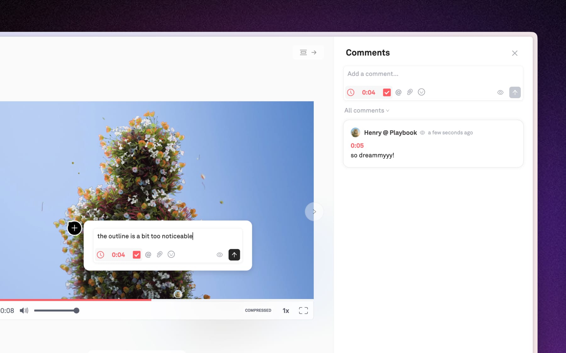 - Auto-timestamp: Playbook automatically attaches the exact time to your comment. You can unselect it to not include timestamp.