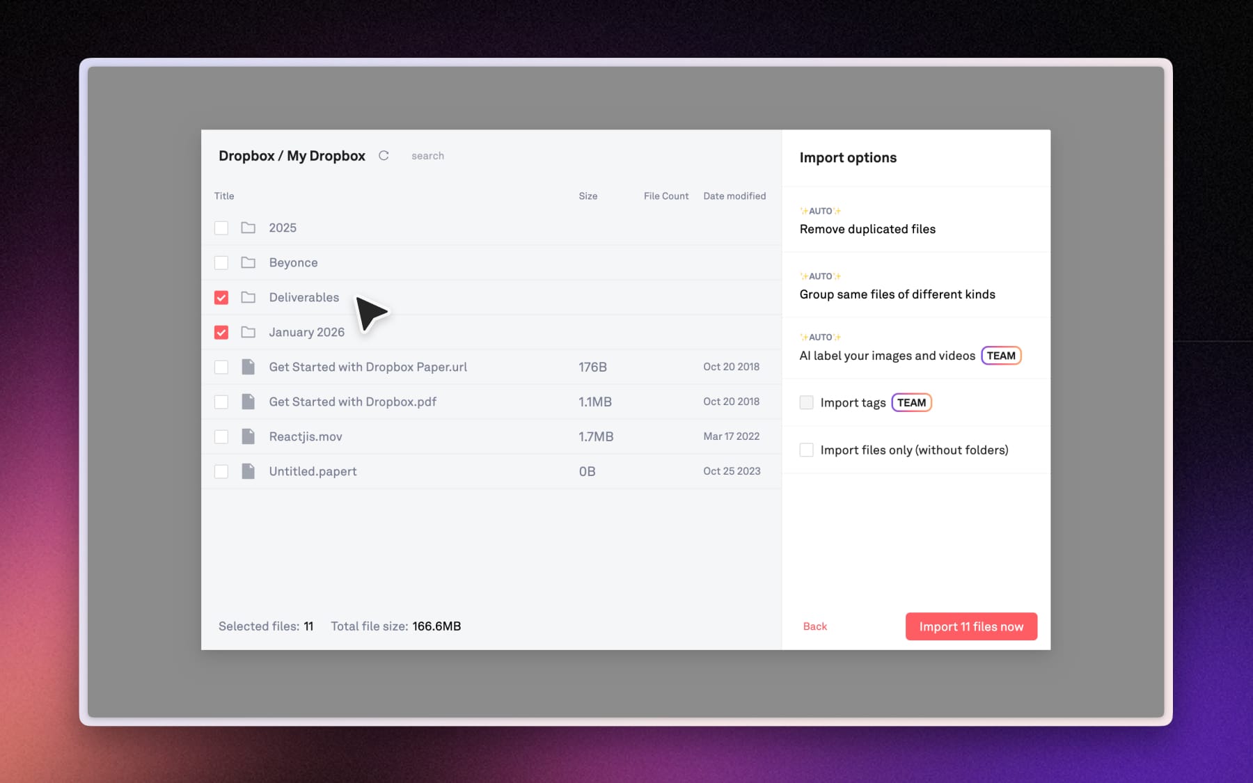 Imported files are copied into Playbook, not moved. Your originals stay exactly where they are in Google Drive, Dropbox, or OneDrive.