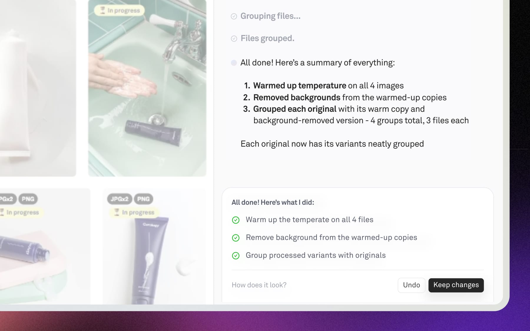 • “Remove backgrounds and group product shots”