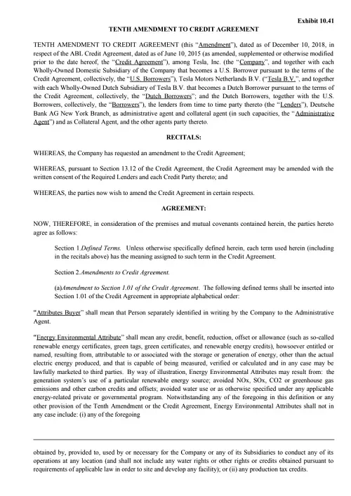Law_Insider_tesla-inc_tenth-amendment-to-credit-agreement_Filed_19-02-2019_Contract