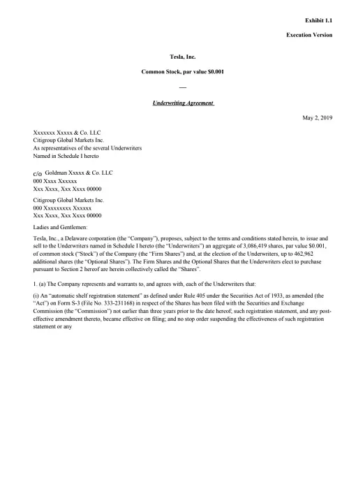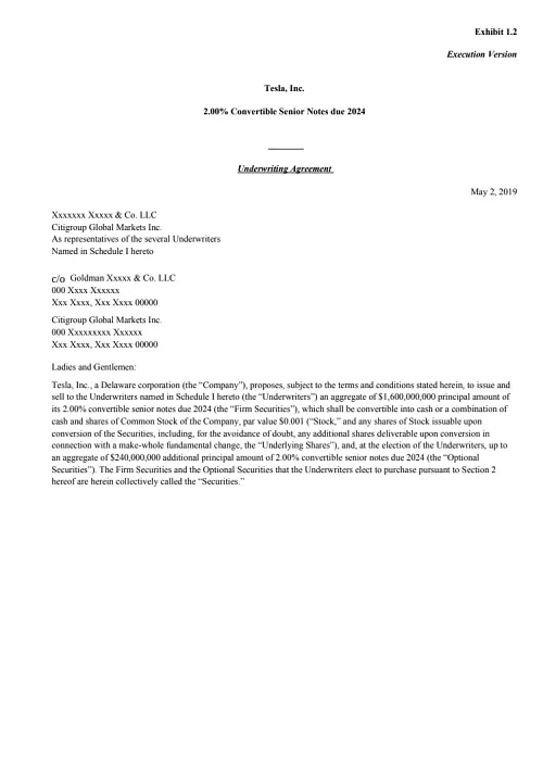 Law_Insider_tesla-inc_tesla-inc-common-stock-par-value-0001-underwriting-agreement_Filed_03-05-2019_Contract