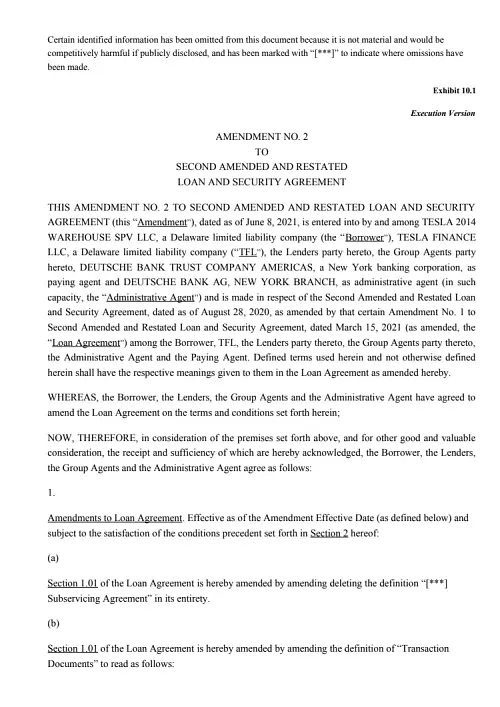 Law_Insider_tesla-inc_amendment-no-2-to-second-amended-and-restated-loan-and-security-agreement_Filed_27-07-2021_Contract