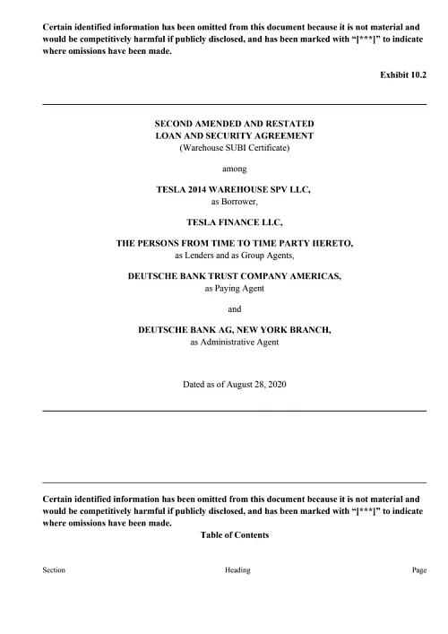 Law_Insider_tesla-inc_second-amended-and-restated-loan-and-security-agreement-warehouse-subi-certificate_Filed_26-10-2020_Contract