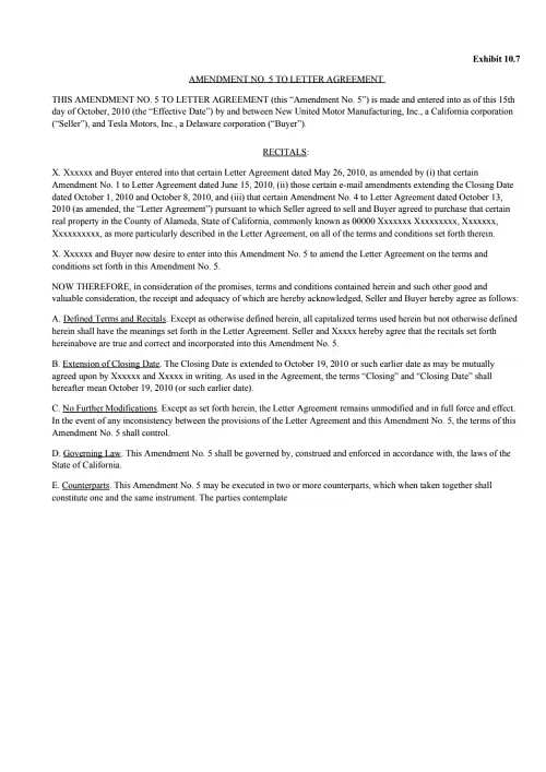 Law_Insider_tesla-motors-inc_amendment-no-5-to-letter-agreement_Filed_12-11-2010_Contract