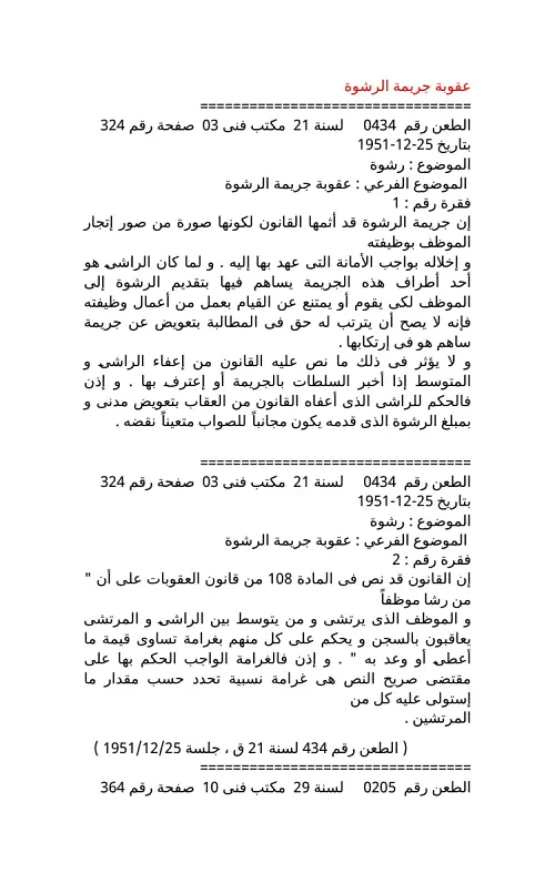 احكام نقض في عقوبة جريمة الرشوة