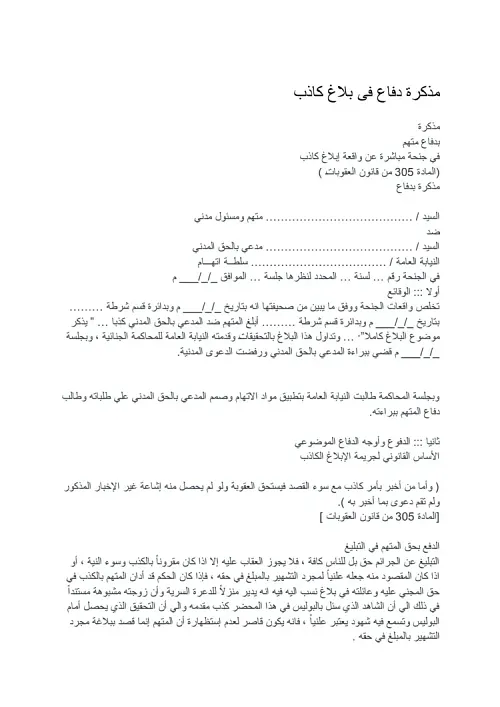مذكرة دفاع في جنحة بلاغ كاذب