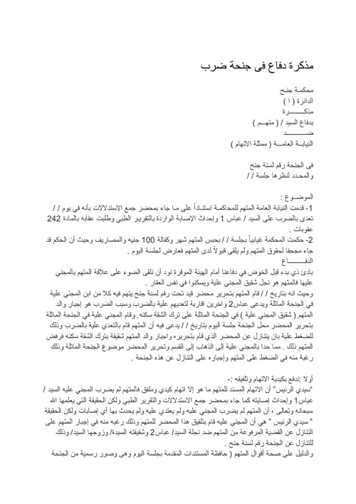مذكرة دفاع فى جنحة ضرب