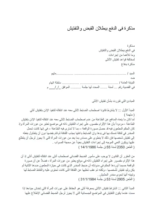 مذكرة فى الدفع ببطلان القبض والتفتيش