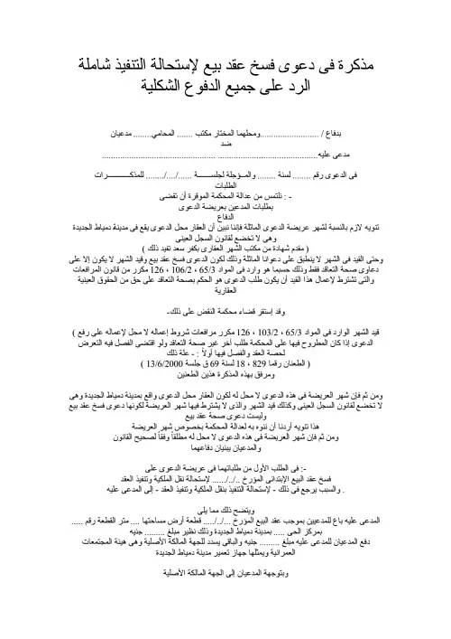 مذكرة فى دعوى فسخ عقد بيع لإستحالة التنفيذ شاملة الرد على جميع الدفوع الشكلية_2