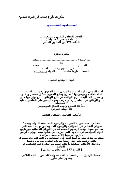 مذكرات دفوع التقادم فى المواد المدنيه