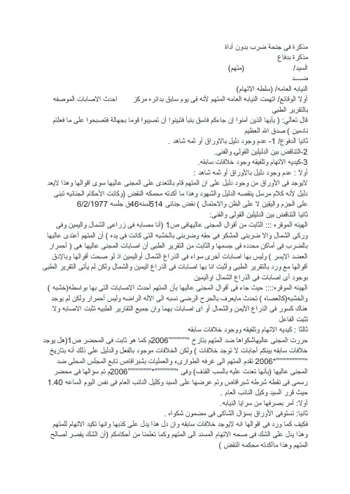 مذكرة فى جنحة ضرب بدون أداة