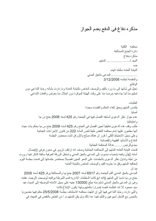 مذكره دفاع فى الدفع بعدم الجواز