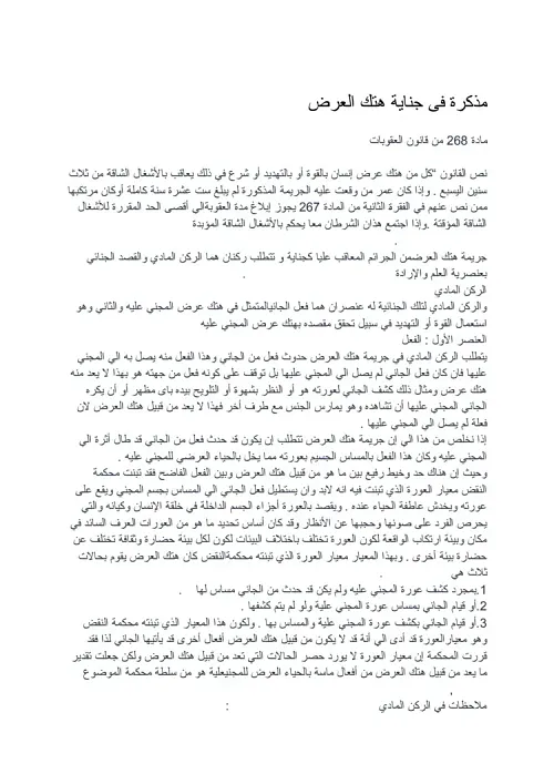 مذكرة فى جناية هتك العرض