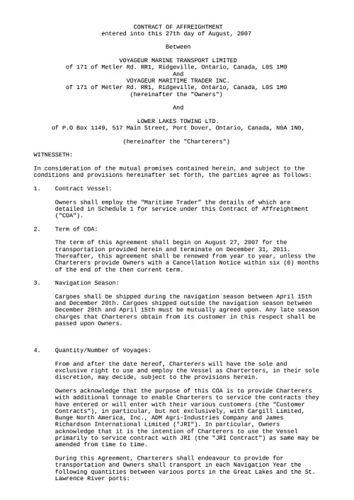 Law_Insider_rand-logistics-inc_between-voyageur-marine-transport-limited-of-171-of-metler-rd-rr1-ridgeville-ontario-canada-l0s_Filed_31-08-2007_Contract