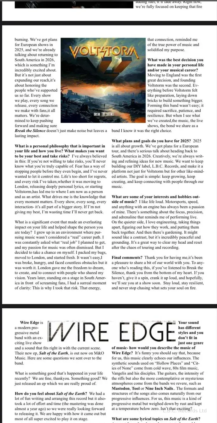 “An explosive blend of classic heavy metal and modern grit Voltstorm deliver a bold, guitar-driven album with heart and intensity.” Keep On Rocking, October 2024