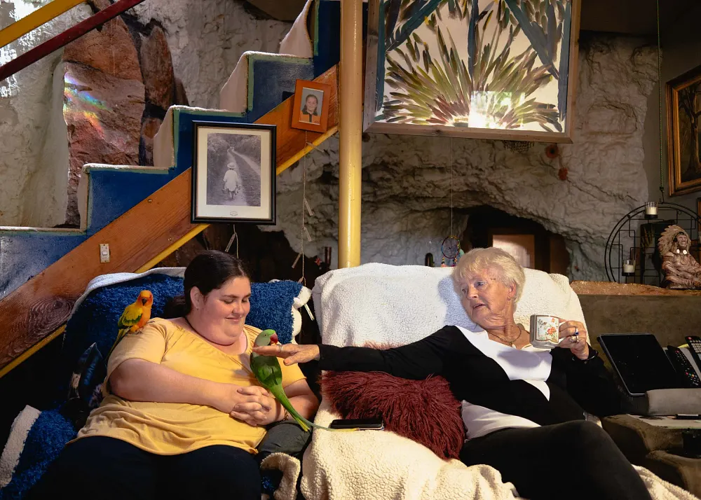 Hiedee (left) and her grandmother Maxine (right) in their underground home.