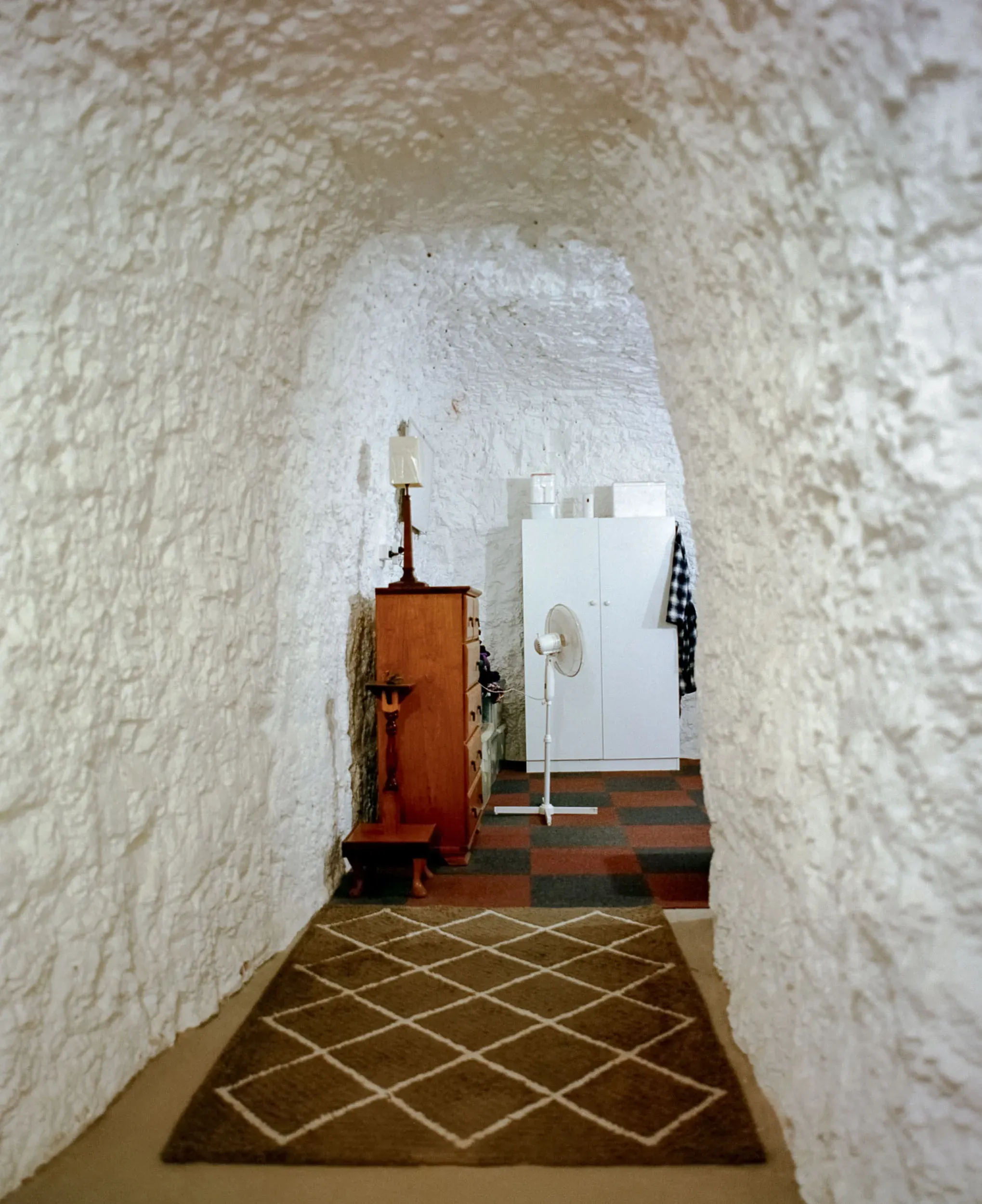 Each dugout is unique. Residents often use mining equipment to excavate the space, and the interiors are hand-carved and shaped. Many dugouts are repurposed old opal mines, adapted to living conditions.