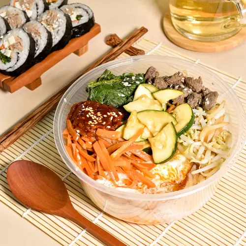 Flat Lay Korean Food, Kimbap, Bibimbap
