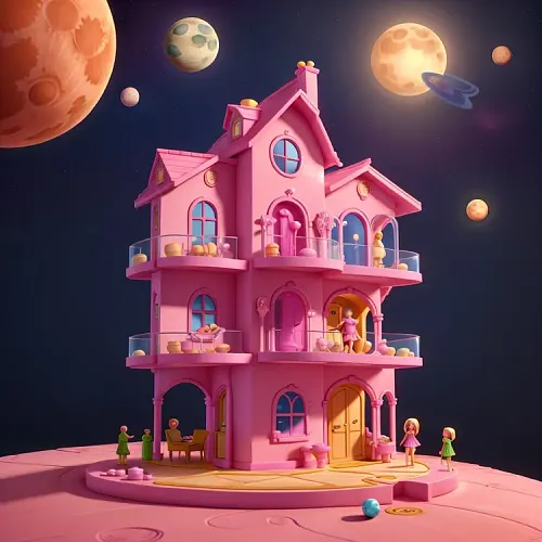 3D_Animation_Style_barbie_dream_house_in_the_moon_small_planet_0