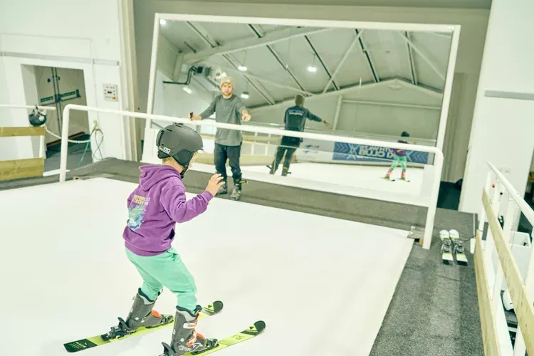 Craig skiing in front of mirror