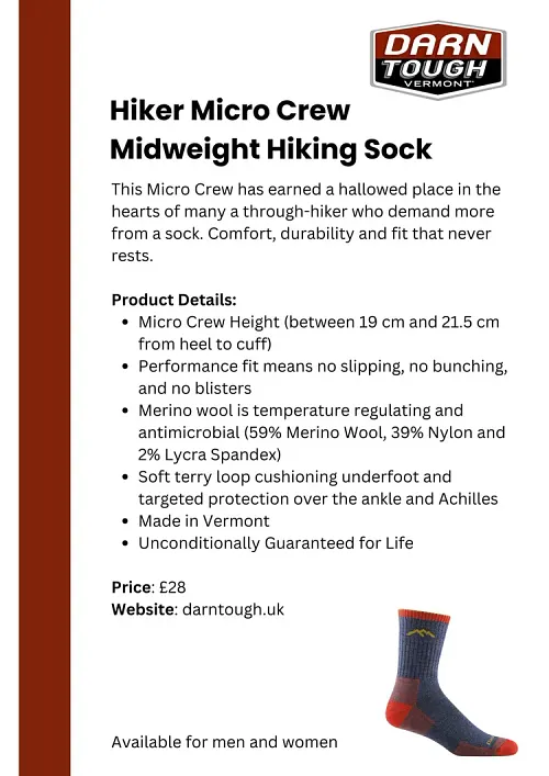 Darn Tough Vermont Hiker Micro Crew Midweight Hiking Sock