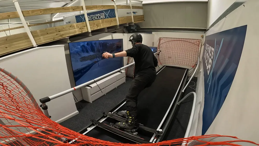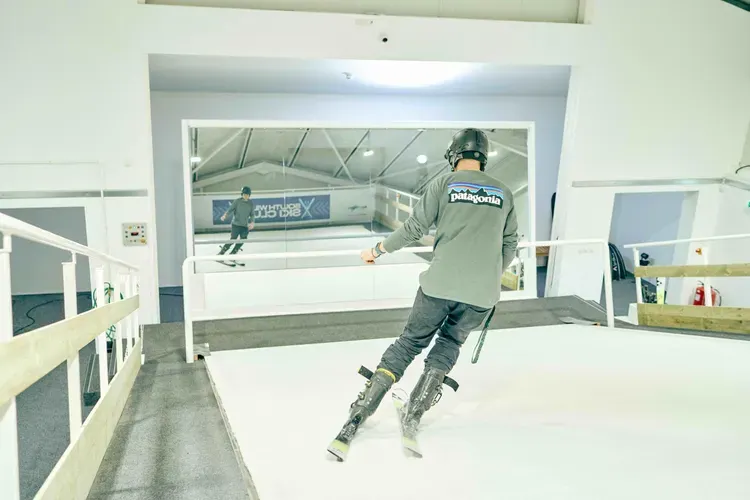 Craig skiing in front of mirror