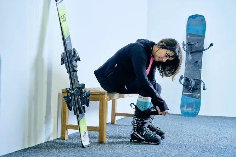 Customer having boots fitted to skis